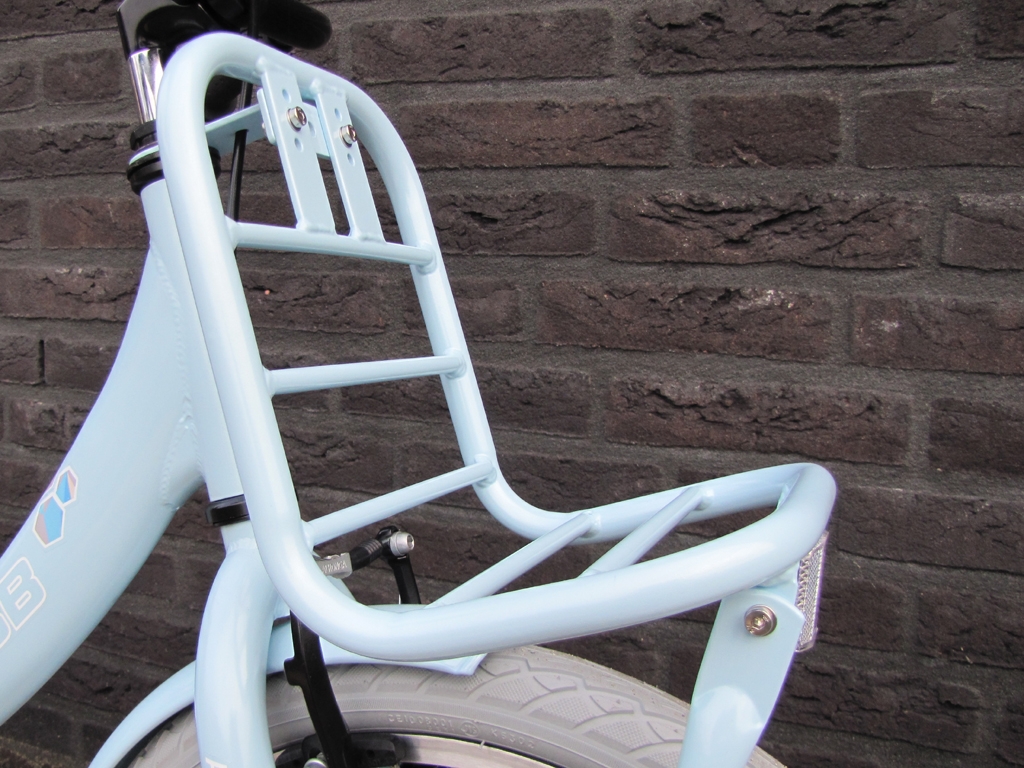 Nieuwe trendy meisjesfiets met voordrager.
