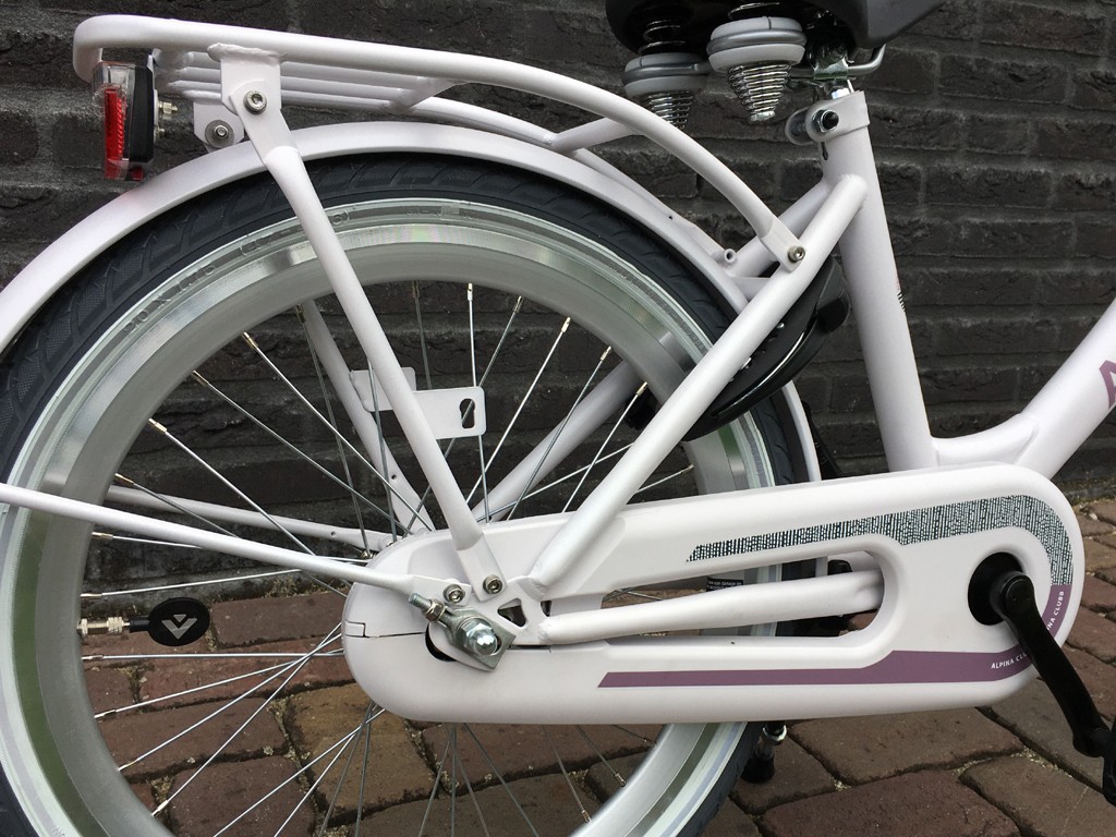 Fiets is voorzien van terugtraprem en 1 handrem.