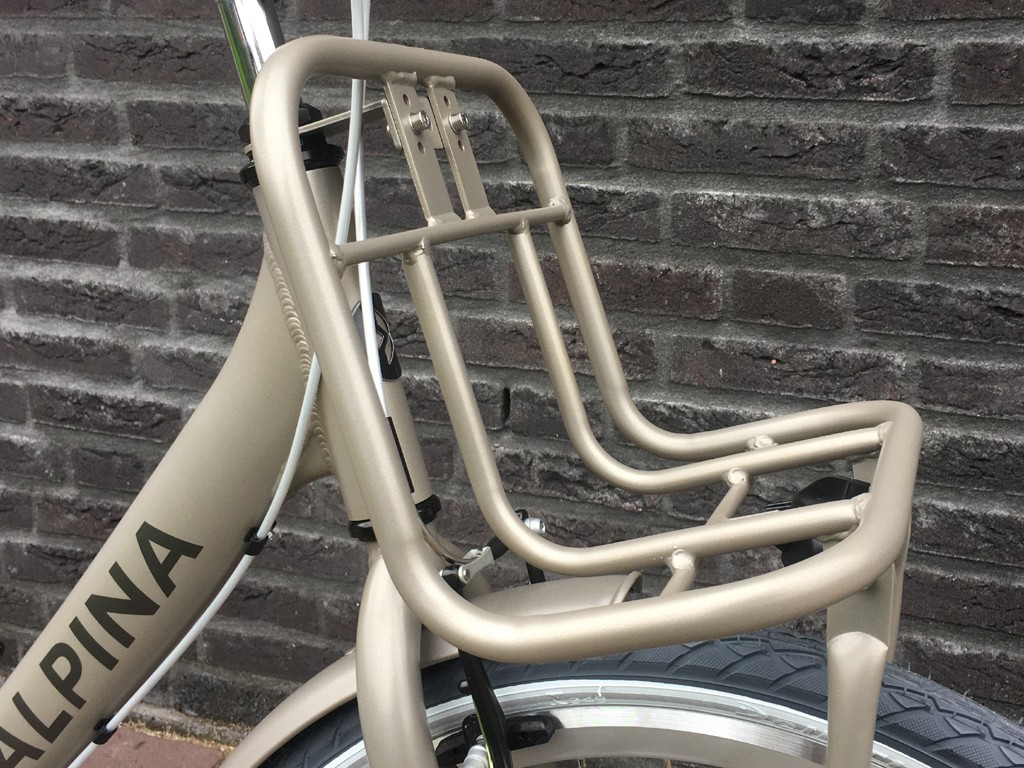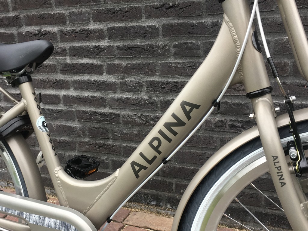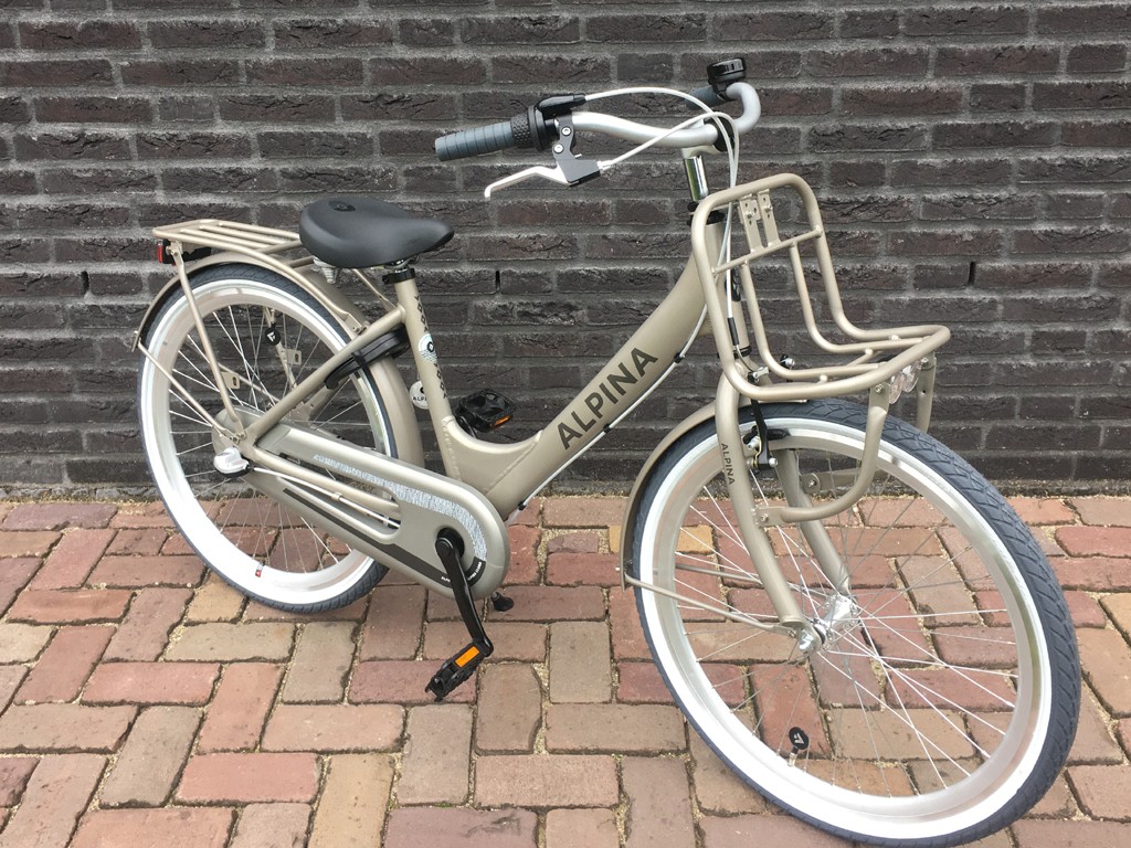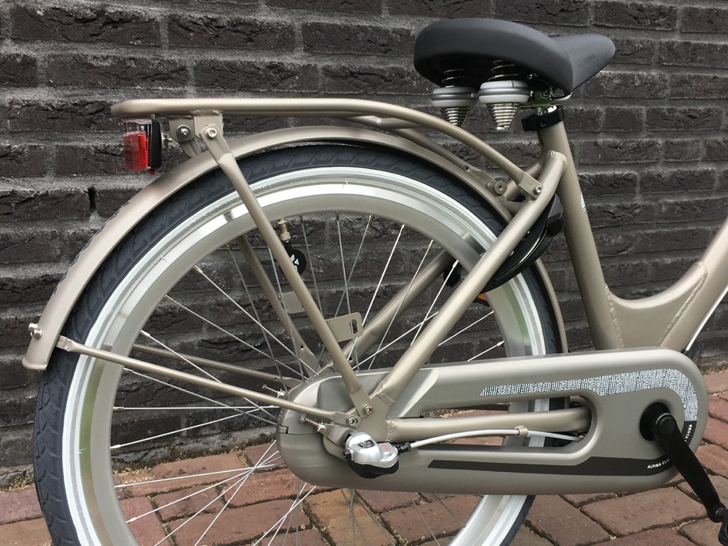 Fiets is voorzien van aluminium frame, 3 versnellingen, terugtraprem en 1 handrem.