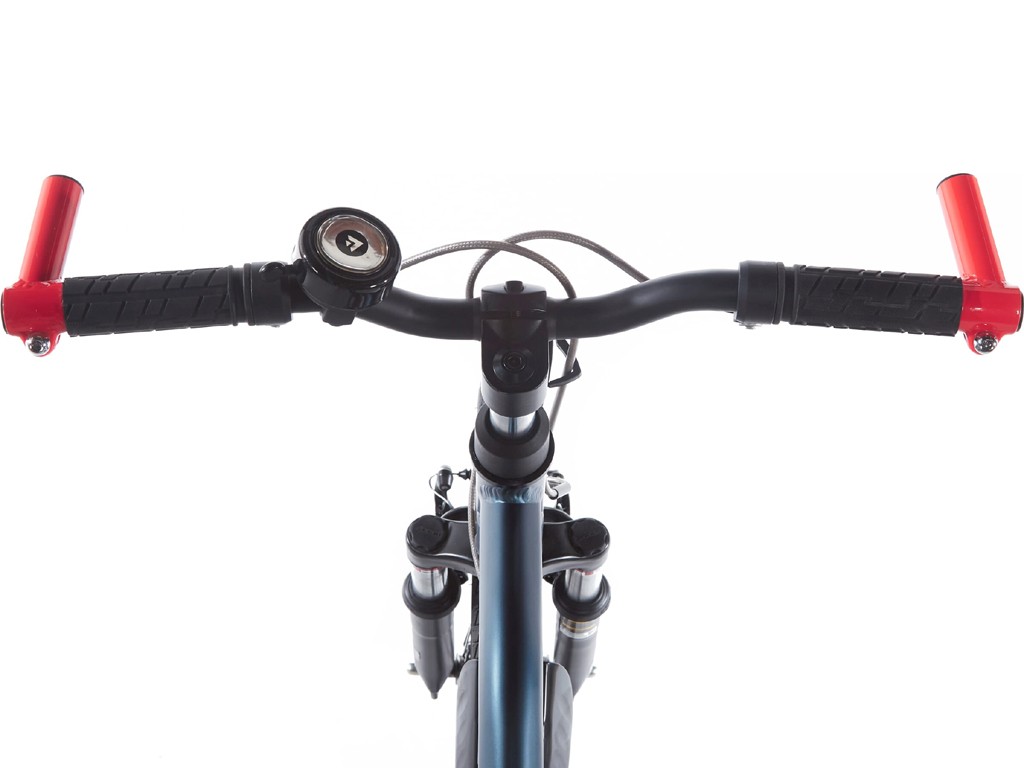 Tevens is deze kinderfiets uitgerust met een aluminium frame verende voorvork en bar-ends op het stuur.