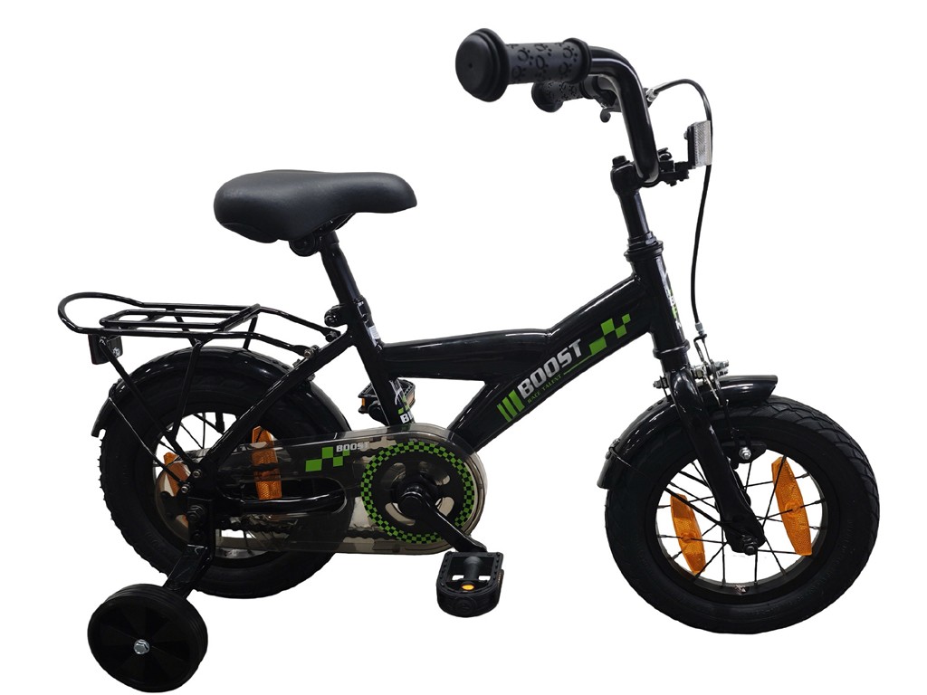 Degelijke stoere jongensfiets met zijwielen. Leverbaar in 3 stoere kleuren.