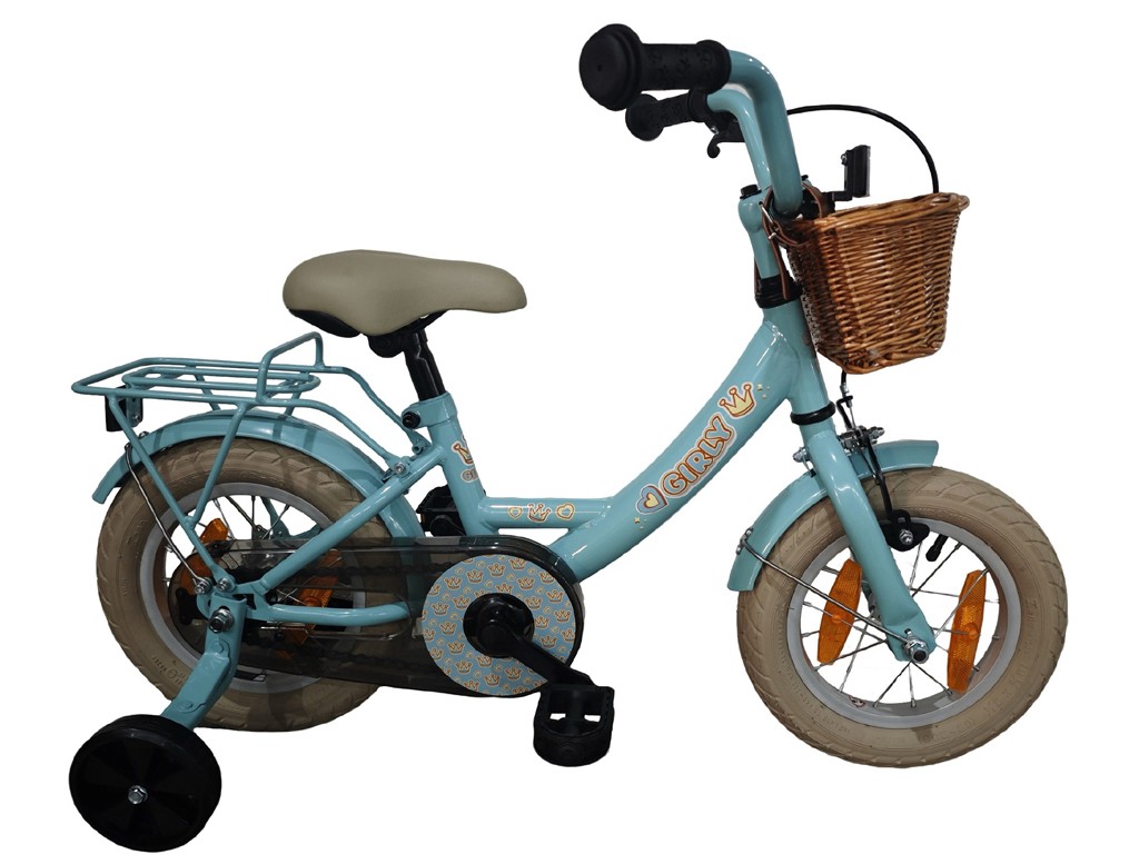 Degelijk 12 inch fietsje met een rotan mandje leverbaar in 3 kleuren.