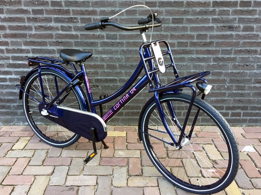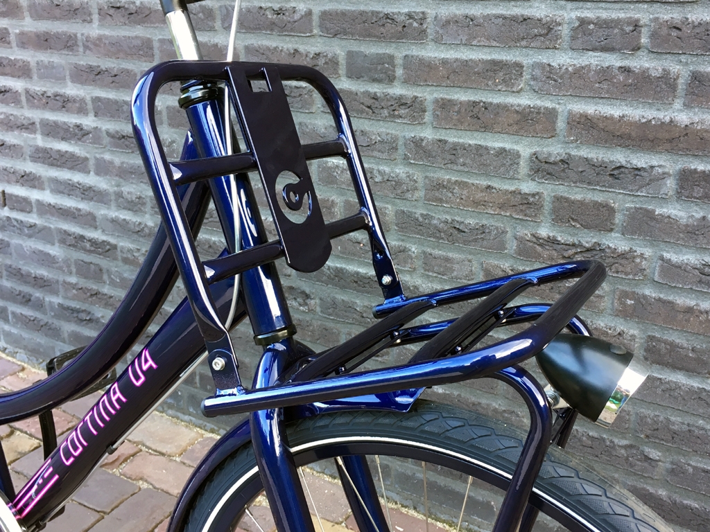 Erg leuke trendy meisjes transport-fiets met voordrager, 3 versnellingen, terugtraprem, batterij verlichting voor en achter.