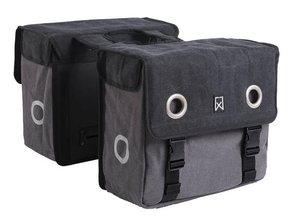 Dubbele canvas Tas Willex Zwart/Grijs, leuke trendy Dubbele fietstas in trendy kleur.